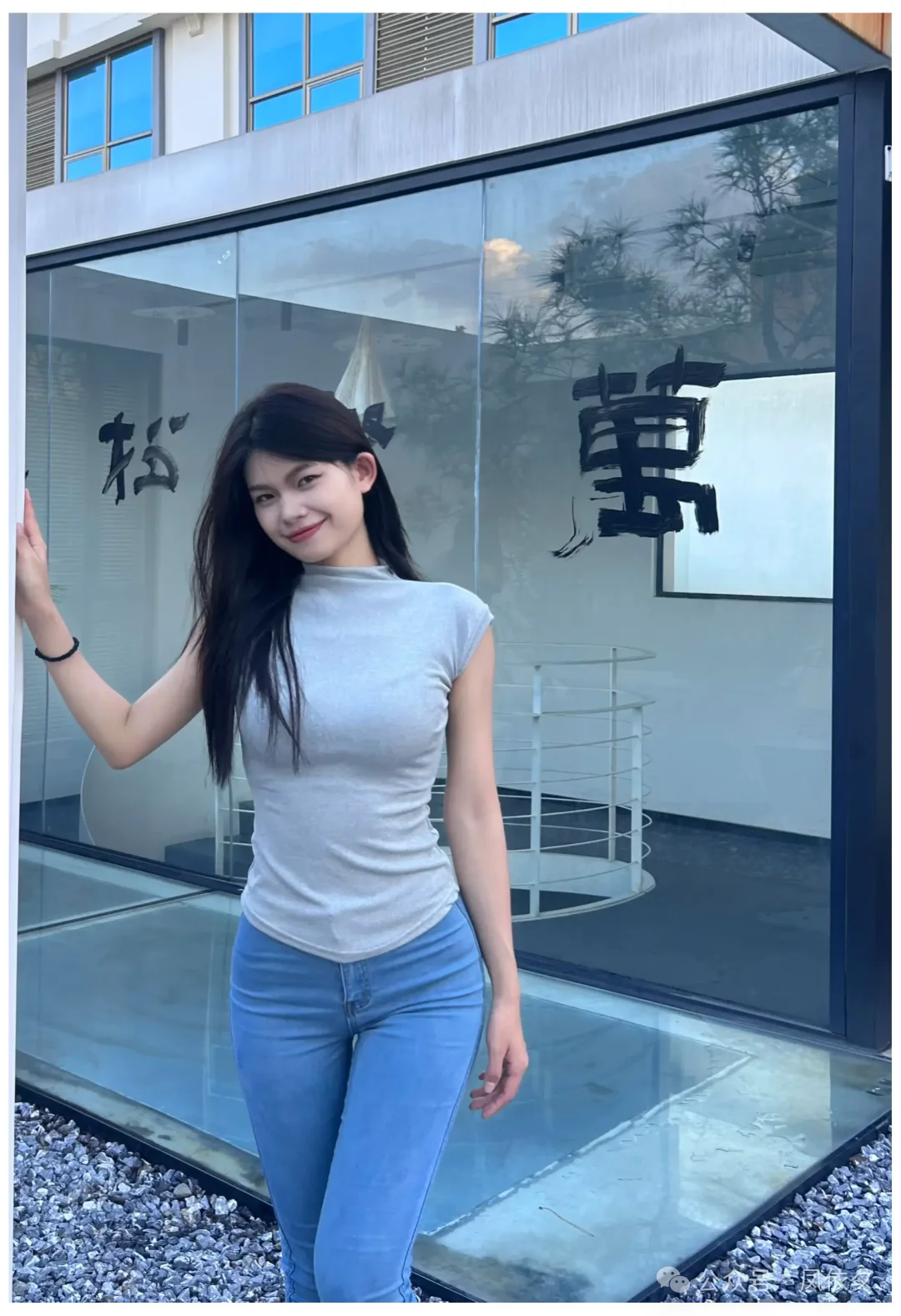 ジーンズ姿のグラビア写真!7つのポーズで、すっきりとした美しさと気品を演出、スタイルも際立つ