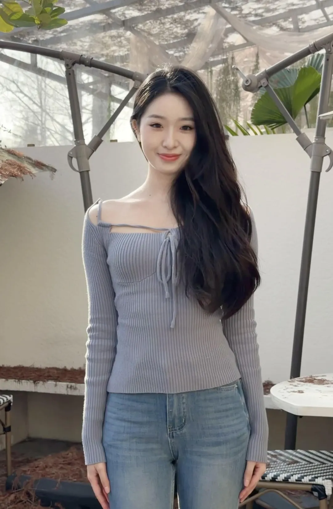 ジーンズを履いた最後のポーズはさらに簡単です。正面を向いて立ち、両手を体の横に自然に下ろし、全身の力を抜いて、カメラに向かって笑顔を見せましょう。このような構図は最も自然で、長く見ていても飽きません。余計な動きがない分、むしろリラックスした雰囲気が際立ち、美しく、写真映えする一枚が簡単に撮れます。