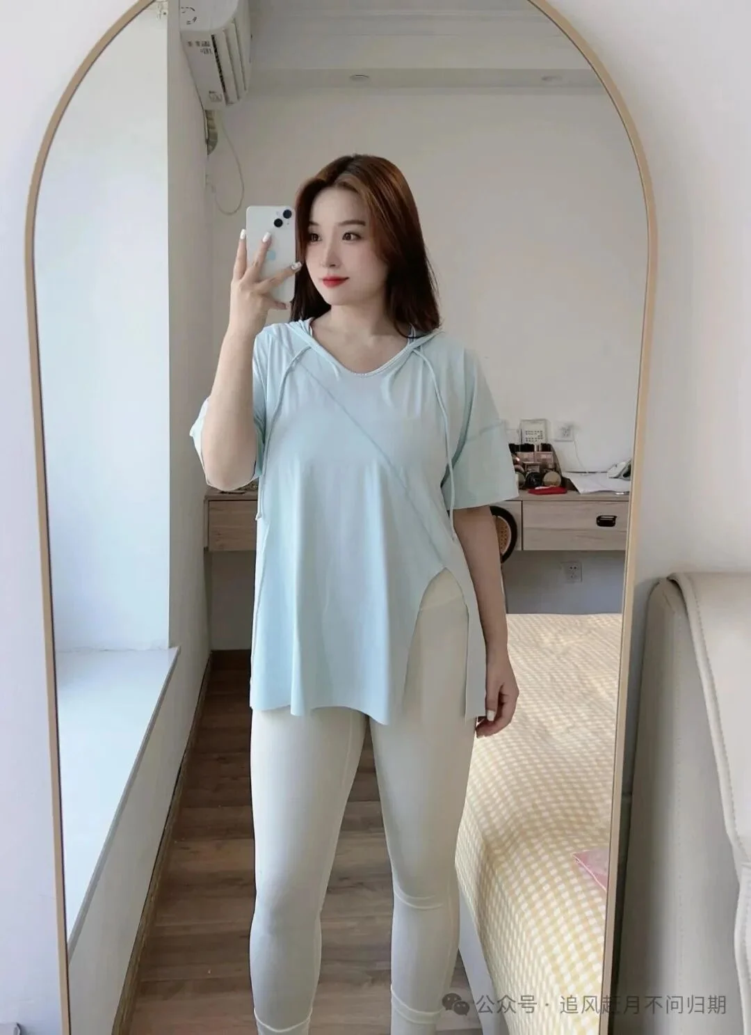 スポーツウェアの撮影では、実は大げさなポーズは必要ありません。写真映えするポイントは、しっかりと立ち、顔を少し傾け、体をわずかに横に向け、足を前後でずらし、視線をそらすといった、こうした小さな仕草にあることが多いのです。今度、自宅で窓辺の自然光が差している時に、色合いがすっきりとしたスポーツウェアを着て、まずは正面でまっすぐ立つポーズや、軽く顔を傾けたポーズから撮影を始めてみてください。鏡に映る静かな光、床の温かみのある色合い、そして生地のドレープ感が、全身を軽やかで心地よく引き立ててくれます。****(文章はオリジナル、画像はブロガー提供、参考・学習用)**