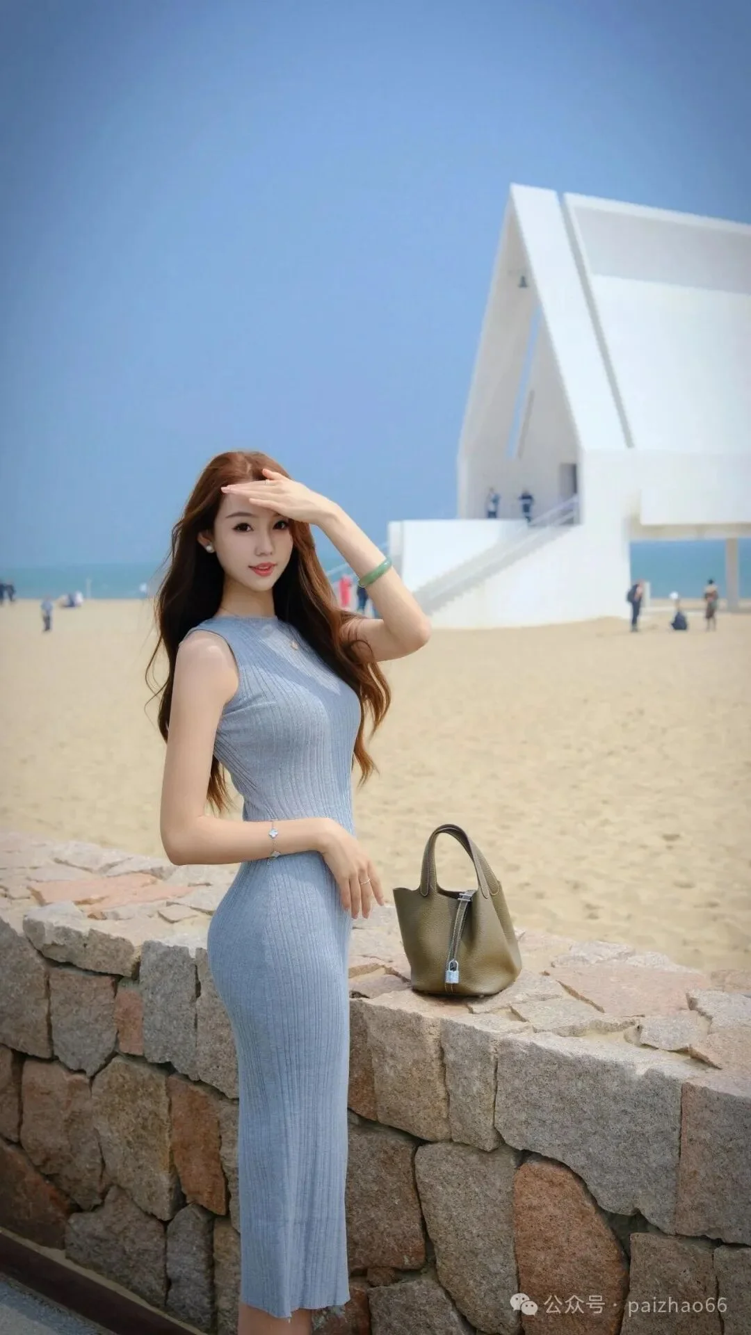 立ったまま写真を撮る際は、バッグを肩にかけると構図がより引き立ちます。片手を自然に腹の前に置き、無理に力を入れず、軽く姿勢を整えてから、カメラに向かって微笑みましょう。このポーズはシンプルですが、上品な雰囲気を演出してくれます。スカートを履いて撮影すると、とても気品があり、写真もすっきりとして美しく仕上がります。