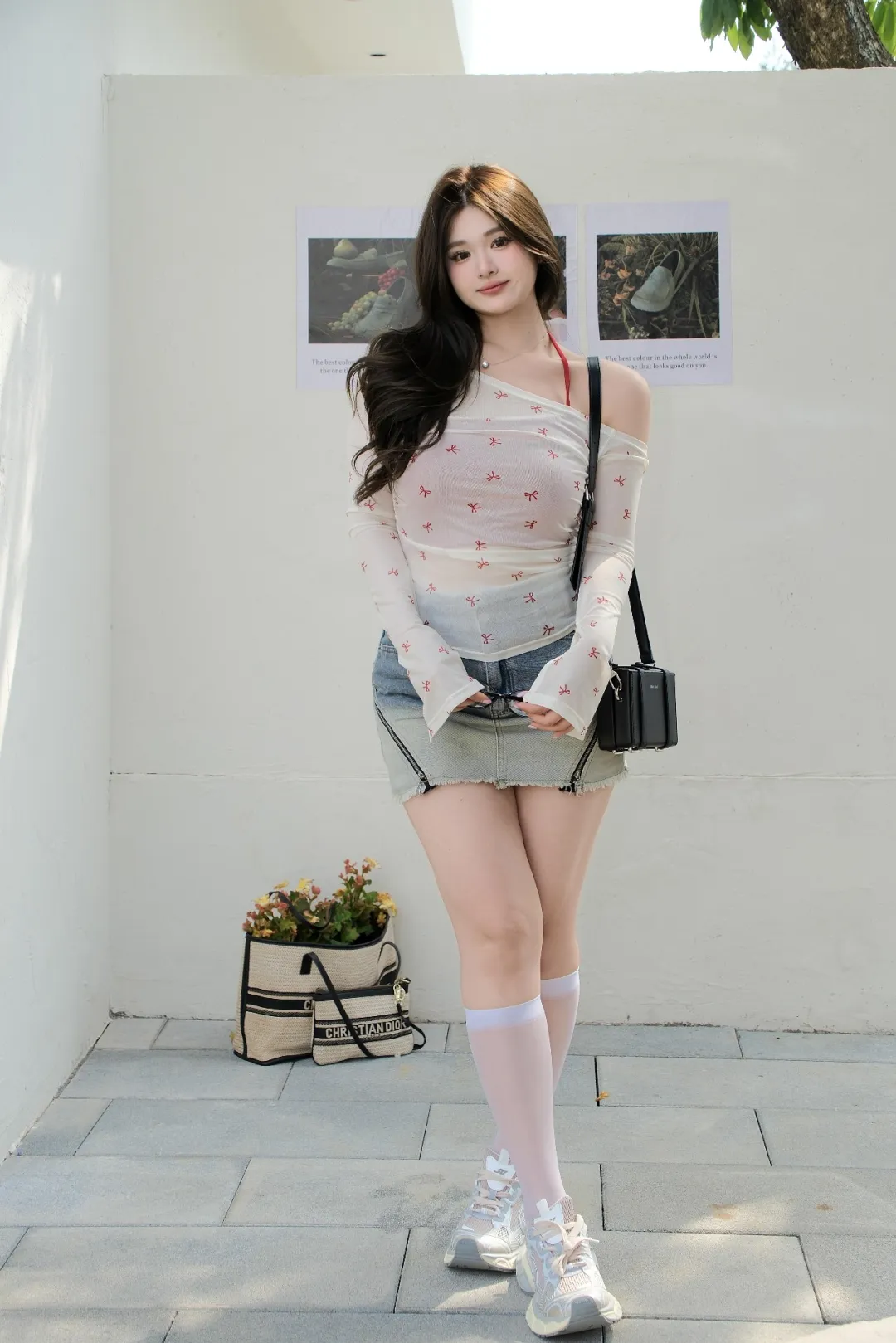 足を組んで立ち、片手をポケットに入れ、もう片方の手を壁に軽く添える。体を少し傾け、わざとらしいポーズは取らず、表情は自然で気品あるものに。ぽっちゃり体型の方がこのポーズで撮影すると、シルエットを美しく整え、スタイルを際立たせ、カメラ映えが良くなります。活発で上品な印象を与え、無理に肉を隠さなくても良い状態を撮影できます。