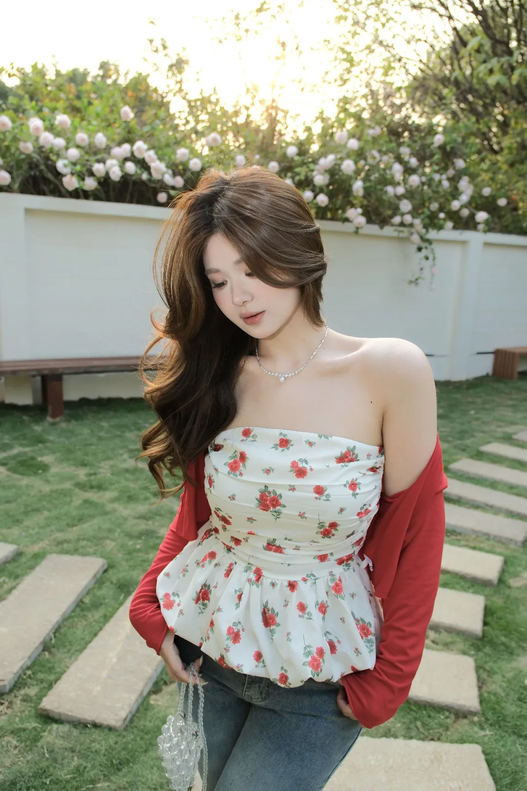 足を組んで立ち、体をリラックスさせて緊張しないように。片手でそっと耳元の髪を撫で上げ、もう片方の手は自然に垂らす。軽く口をとがらせて、カメラを見つめる。このポーズはシルエットを美しく見せ、ぽっちゃり体型の方にぴったり。活発で上品な印象を与え、映えるだけでなく、さりげなくスタイルを強調できる。無理に隠さなくても素敵に見える。