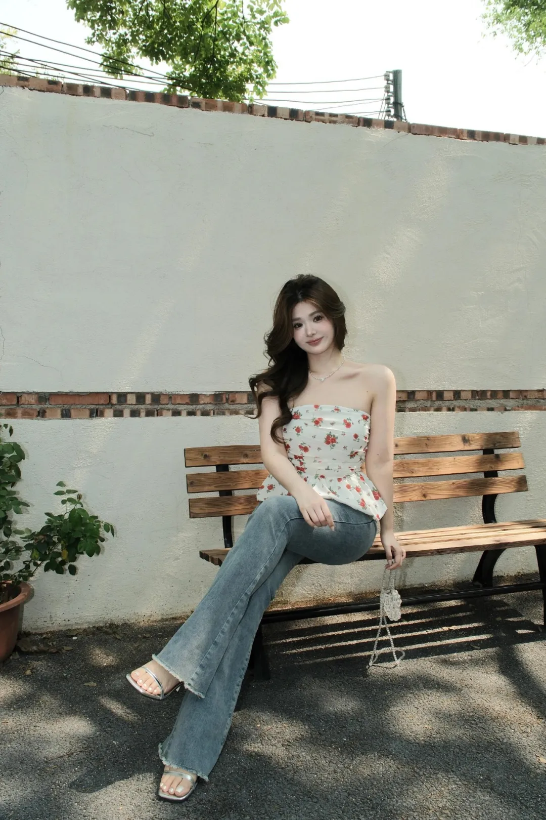 ベンチに座り、片足を横に軽く出し、もう片方の足を曲げて、両手を自然に膝の上に置き、体をリラックスさせ、笑顔を浮かべてカメラを見つめる。ぽっちゃり体型の方がこのポーズで写真を撮ると、脚のラインが長く見えスタイルが引き立ち、映えるだけでなく上品で優しい雰囲気を醸し出し、とても雰囲気のある写真に仕上がります。