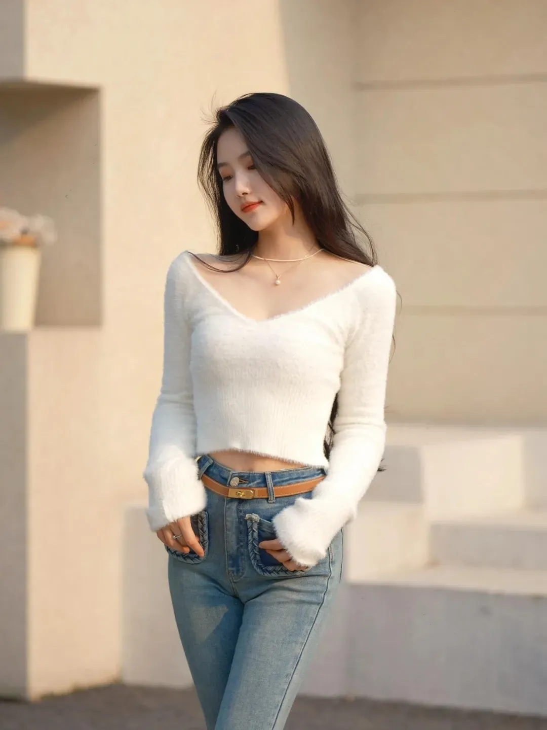 ジーンズ姿の写真は、実はとても魅力的に撮れるものです。ジーンズ自体がスタイルを美しく見せてくれるため、自然なポーズをとれば、立っているだけでも歩いているだけでも撮影できます。わざわざ複雑なポーズをとる必要はなく、軽く歩いたり、ただ立っているだけでも、上品で美しい写真が撮れます。そうすれば、あなたの素敵なスタイルも自然と写真に映し出されるでしょう。