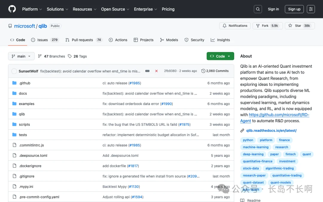 1.Microsoft Qlib – マイクロソフトのAI対応クオンツ投資プラットフォーム ギットハブ: microsoft/qlib | ⭐ 37…